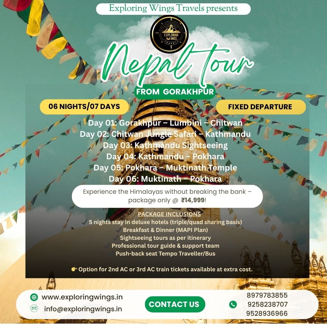 With budget-friendly pricing, easy travel, comfortable stays, and a well-planned itinerary, the Gorakhpur to Nepal tour package offers an unforgettable experience.