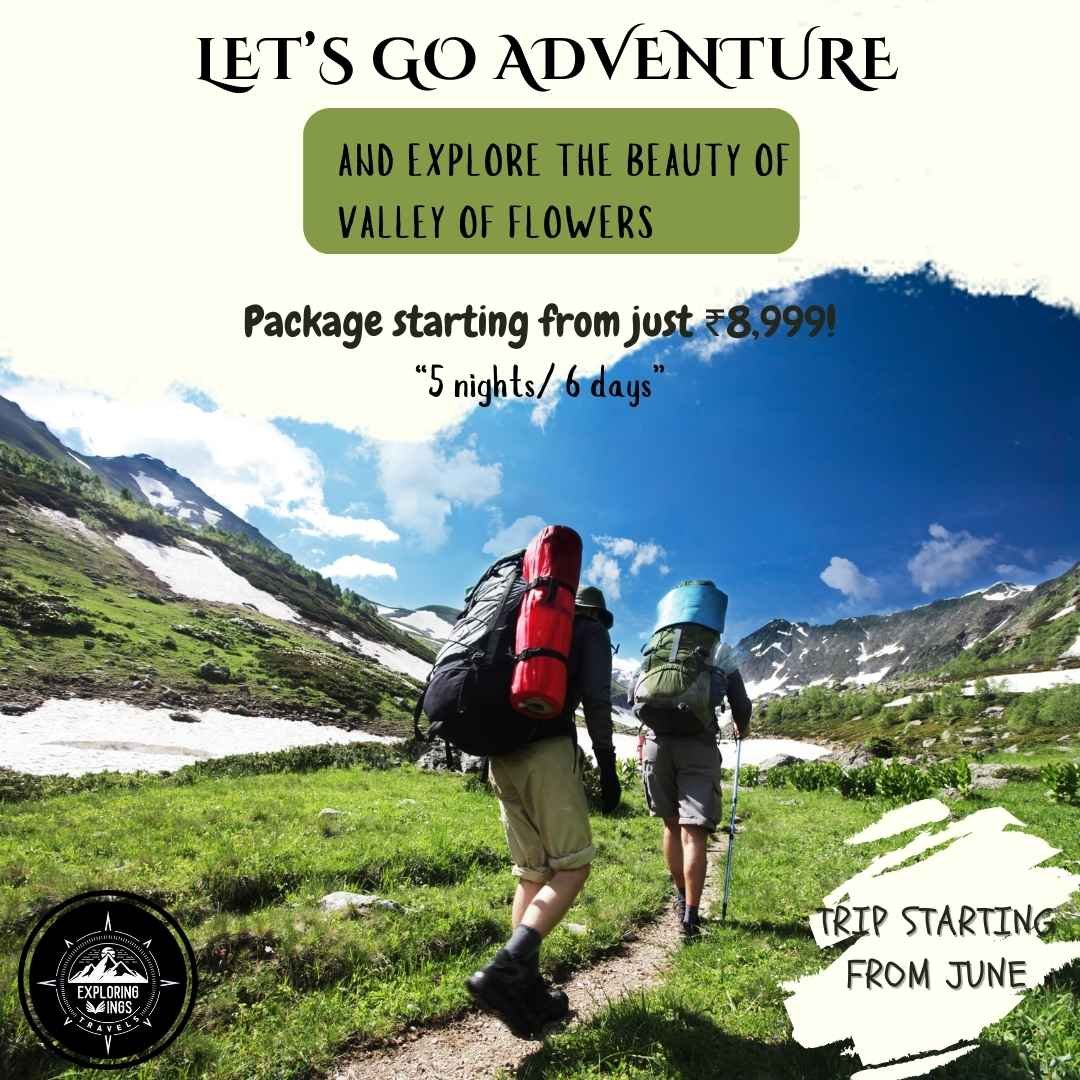 The Valley of Flowers trek from Rishikesh price starts at ₹8,999 per person for a 6 Days / 5 Nights package with Exploring Wings.
